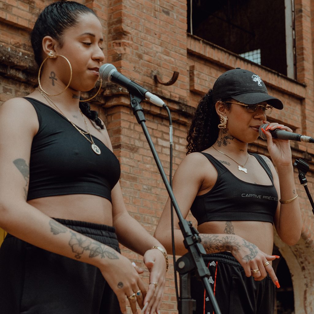 Tasha e Tracie Okereke, 26, paulistanas, gêmeas. São DJs,Mcs, estilistas, diretoras de arte, produtoras culturais e blogueiras, ativistas periféricas. Trabalham em prol da autonomia e da auto-estima do jovem favelado. As letras carregam falas sobre conquistas e empoderamento, discurso esse alinhado com toda trajetória da dupla na música e no lifestyle. Ao contrário do primeiro EP “Rouff”, lançado em 2019, o novo trabalho “Diretoria” traz sensações mais divertidas. Apesar de ser um disco mais denso, nos sentimentos mais soltas. Tudo acaba sendo político quando é uma pessoa marginalizada fazendo, mas a diferença é que estamos sobrecarregadas com tudo que tem acontecido no mundo e por isso a gente se propôs a colocar nosso momento numa proposta mais divertida”, complementa Tracie.