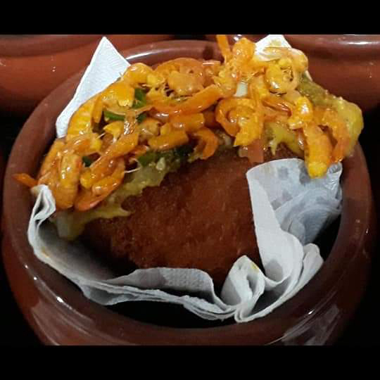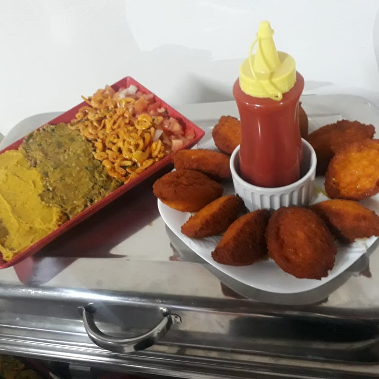 Acarajé tradicional recheado de vatapá ,caruru, vinagrete, camarão