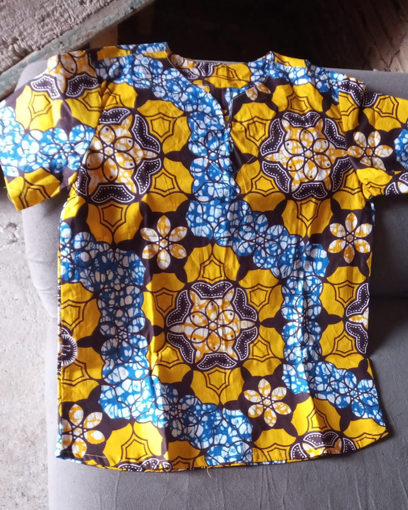 Blusa manga única em estampa africana (tamanho P adulto – peça única)